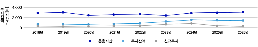 ■ 2025년 10월 말 기준 약 3,000억원의 자산을 운용 중이며 2026년에는 신규로 150억원을 투자하여 총 3,150억원의 자산운용을 목표로 함
